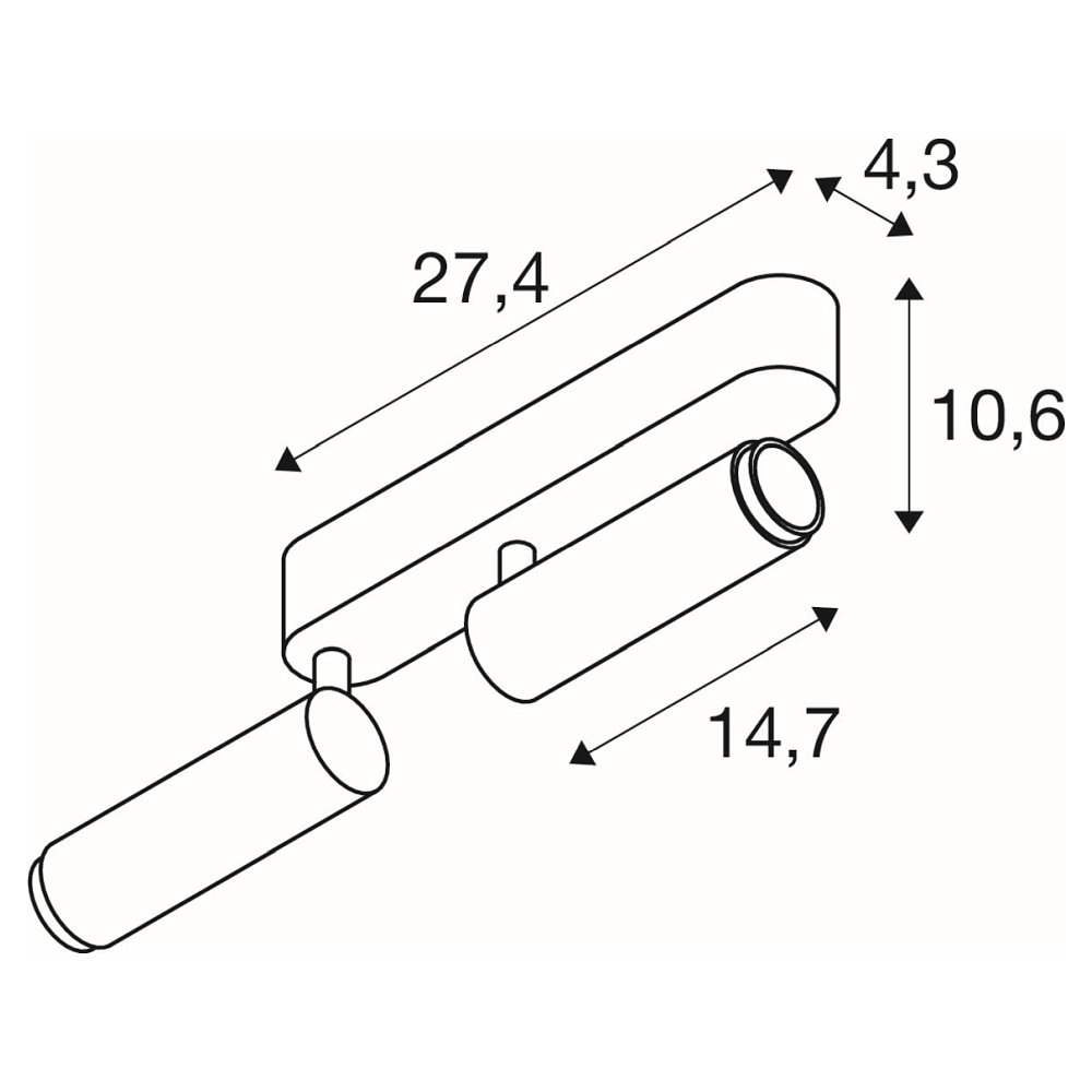 The LED surface-mounted ceiling light GRIP! M DOUBLE from SLV impresses with its elegant design and high-quality workmanship. With dimensions of 27.4 x 14.7 x 10.6 cm, the luminaire blends discreetly into any room design. It features two integrated light sources and has protection class 1 as well as the IP protection rating IP20, ensuring safe use. Weighing only 0.744 kg, it allows for particularly easy and flexible installation.