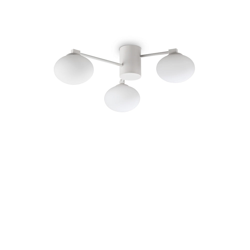 The ceiling canopy and frame of the HERMES are made of galvanized metal, while the diffusers are made of white blown and etched glass. This not only gives the luminaire a modern look but also ensures a pleasant light diffusion in the room.