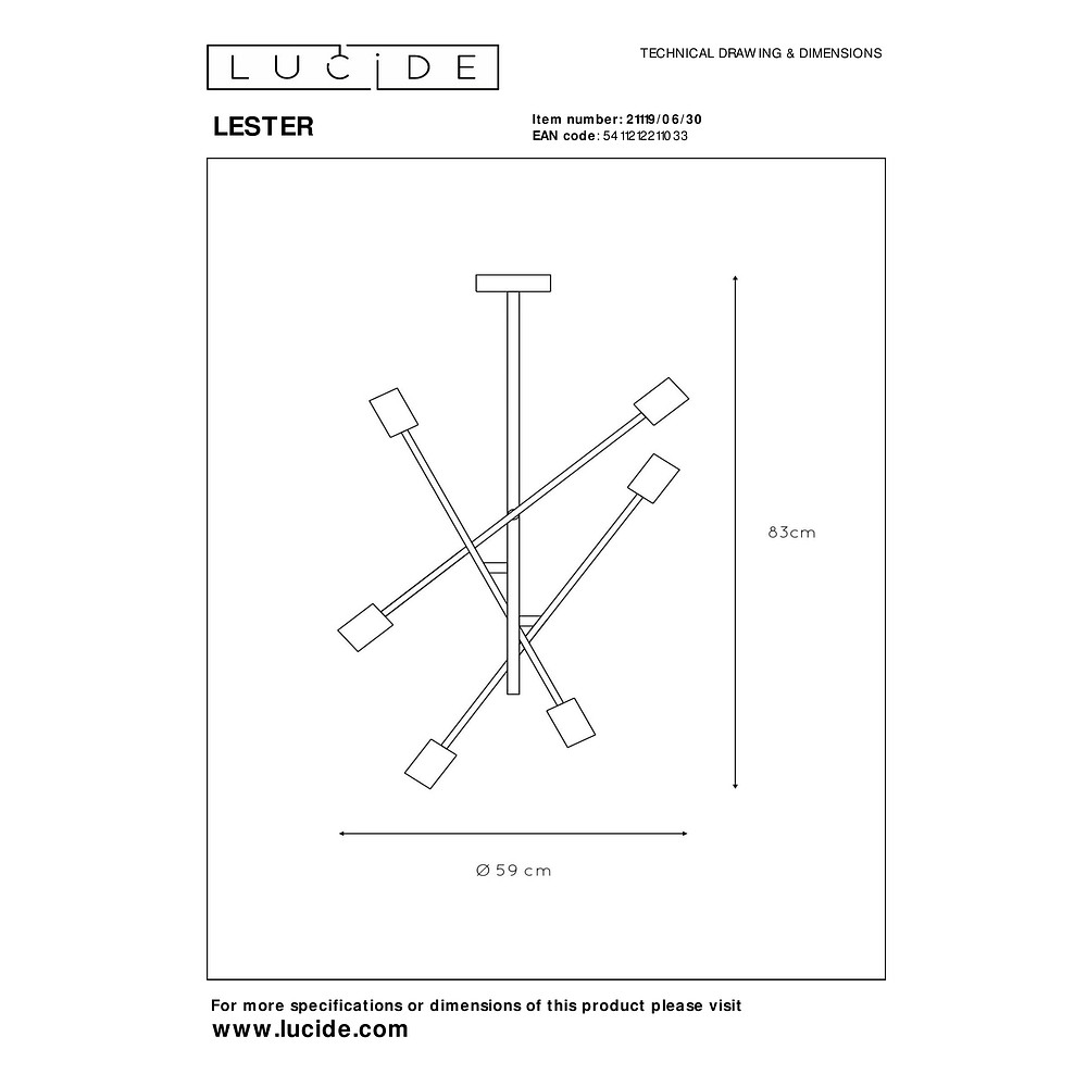 The ceiling light LESTER is a modern and stylish lighting element for your home. With 6 E27 sockets, it offers enough space for light bulbs of your choice to achieve the desired lighting effect. Thanks to the swivel function, you can direct the light precisely and create a pleasant atmosphere.