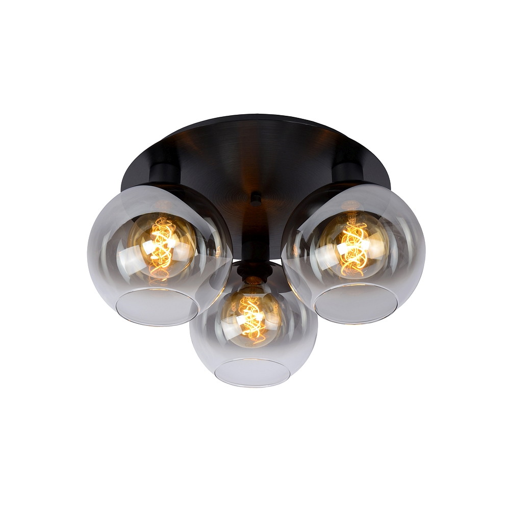 ceiling luminaire MARIUS 3 flames, round E27 IP20, smoky colour, black