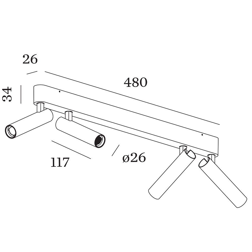 ceiling luminaire MATCH 4.0 4 flames, cardanic swivelling IP20, mat, traffic white dimmable