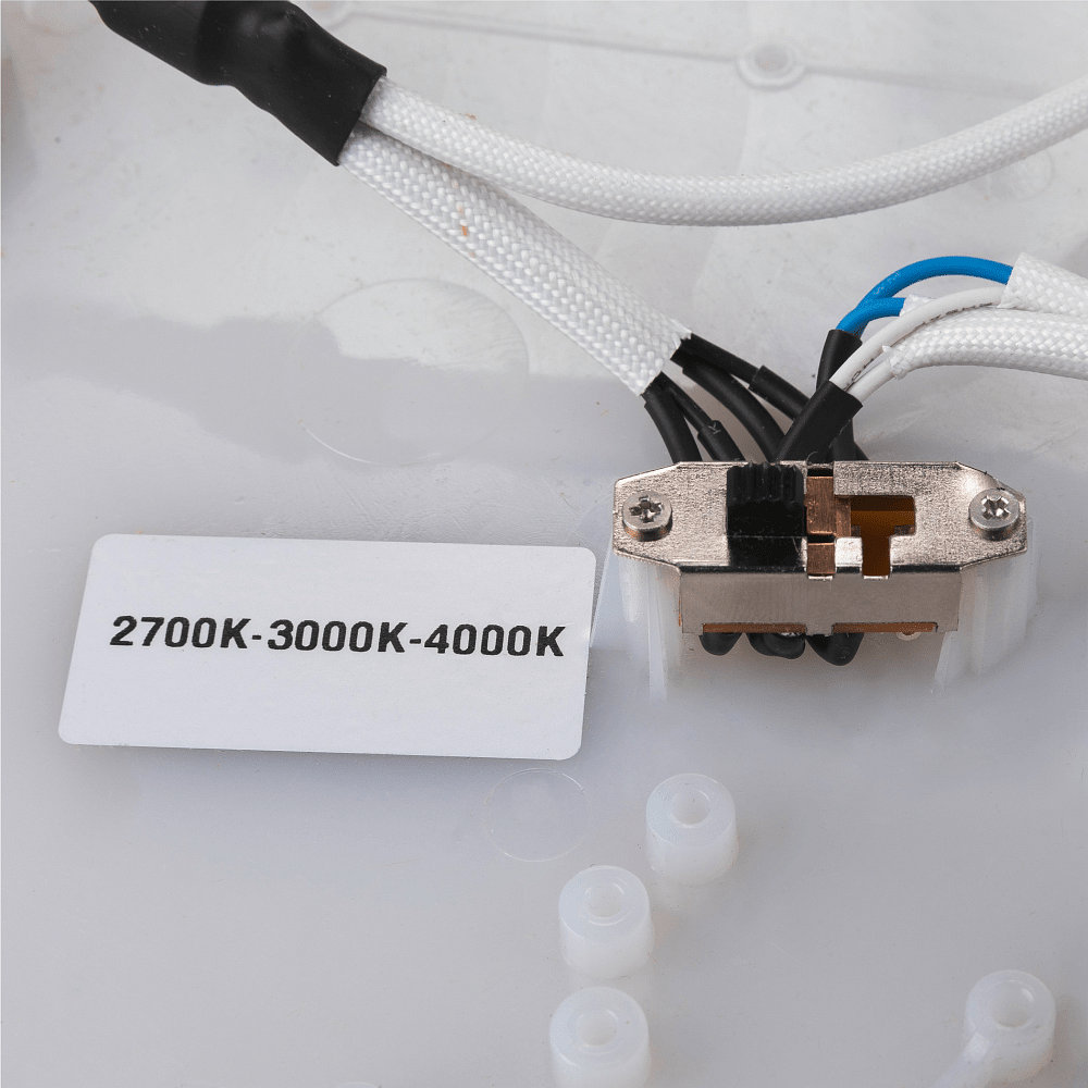The ceiling light comes with a light color switch and a driver included. A dimmer and a pendant set are available separately, allowing for individual adjustment of the lighting as needed.