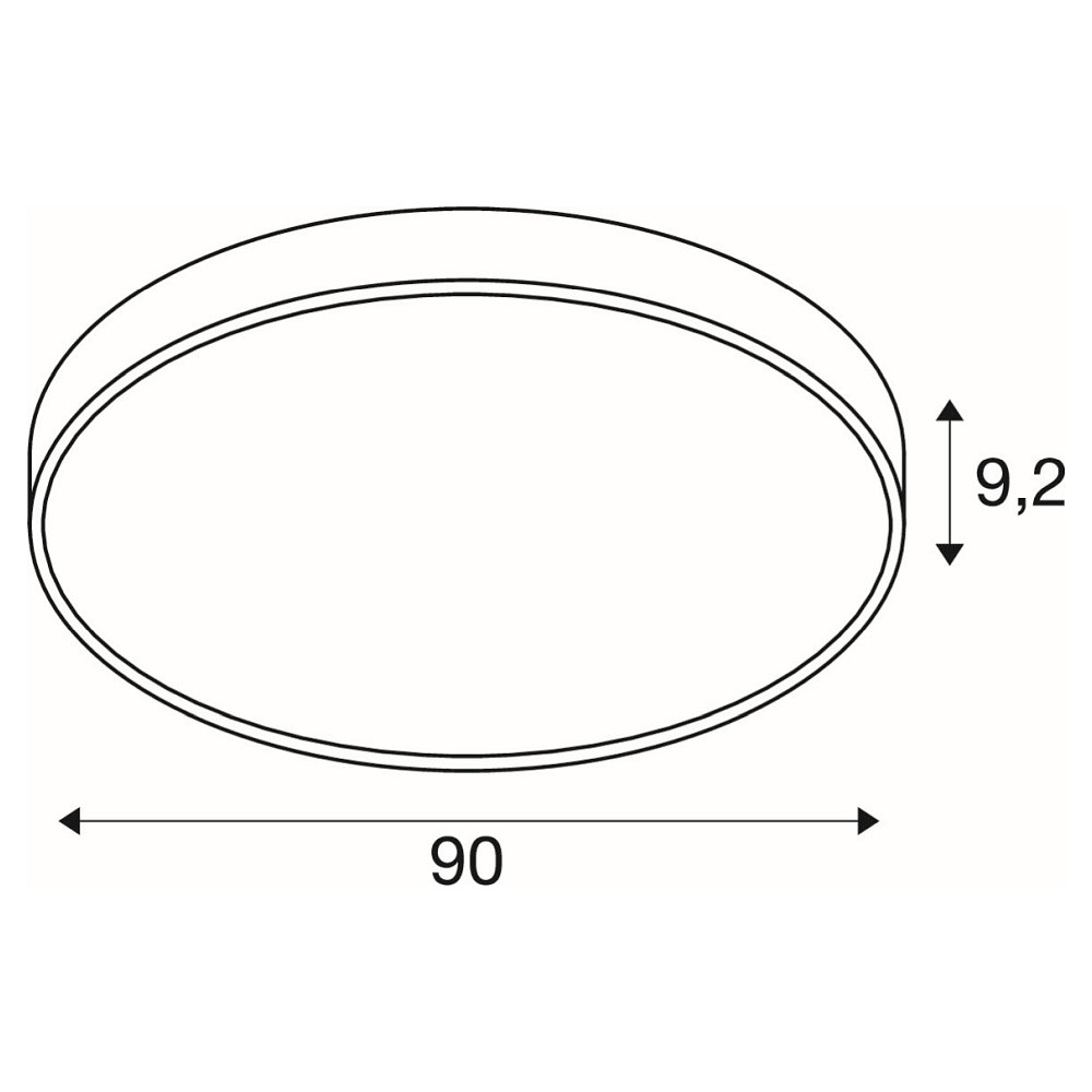 The LED Ceiling Surface Mount Light MEDO® 90 has a diameter of 90cm and a height of 9.2cm. With a weight of 9kg, it is robust and durable. It is mounted through surface mounting and connected to the power grid via terminals.
