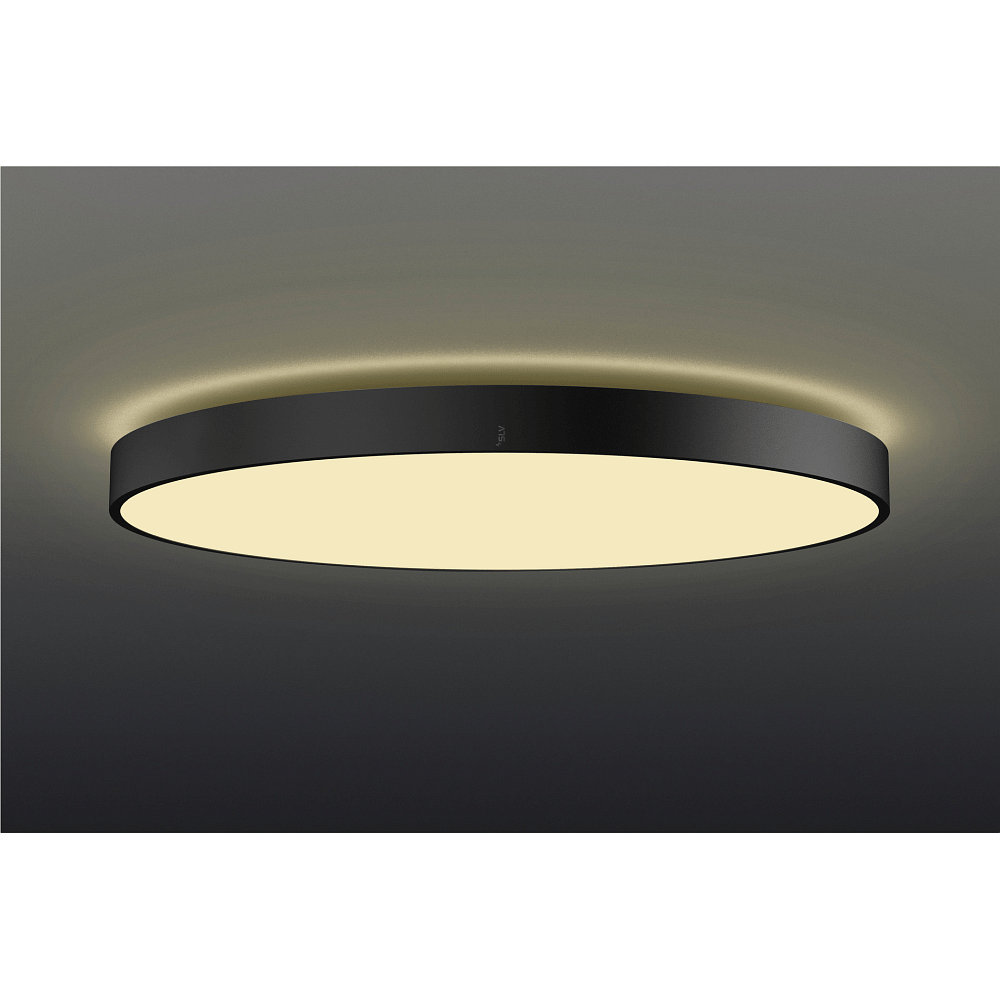 With its round design in black, the LED Ceiling Light MEDO® PRO 90 blends perfectly with any interior style. Measuring 90x90x9.2 cm, it is a real eye-catcher. The ceiling light comes with a light bulb and is easy to install.