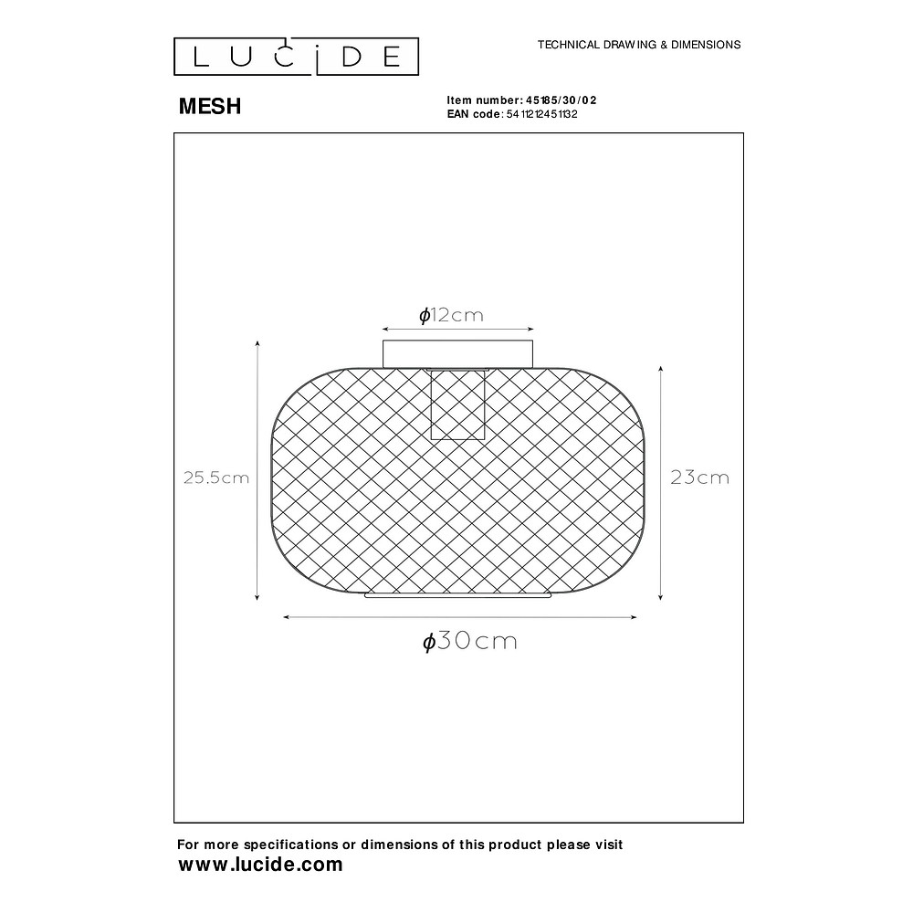 The ceiling light MESH has a base for an E27 bulb and operates at a voltage of 230V. With protection class 1 and IP20 protection rating, the light is suitable for indoor use. Please note that the light bulb is not included.