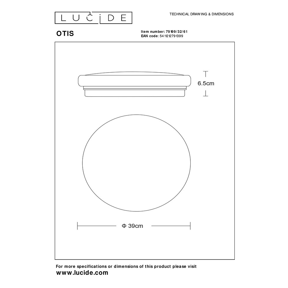 The LED ceiling light OTIS is a modern and energy-efficient lighting solution for your indoor space. With a diameter of 39 cm and a height of 6.5 cm, it fits perfectly in any room. The opal-colored plastic cover ensures a pleasant light distribution.