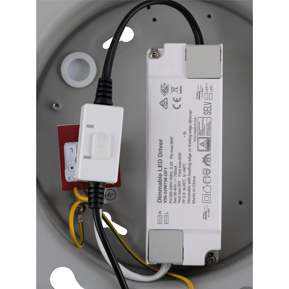 This ceiling light offers a stepwise adjustable color temperature between 3000 and 4000 Kelvin. This allows the light to be individually adapted to the desired atmosphere – from warm white to neutral white. Additionally, the luminous flux is continuously dimmable, enabling optimal light regulation. The dimming types phase-cut and leading-edge ensure easy integration into existing control systems.