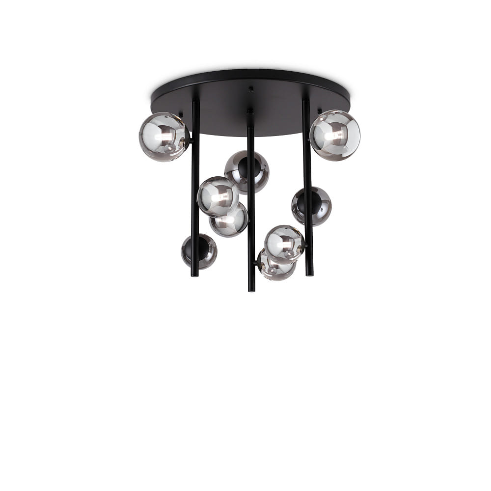 ceiling luminaire PERLAGE 9 flames G9 IP20, smoky colour, black matt dimmable