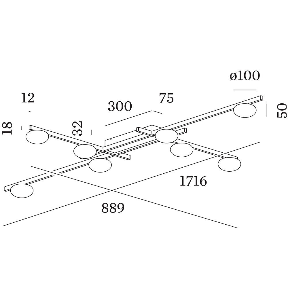 The ceiling light features a flat, grid-shaped aluminum frame with 8 round opal glass heads that ensure uniform light distribution. With an average lamp lifespan of 50000 hours and a weight of 2.34kg, it is not only durable but also easy to install.