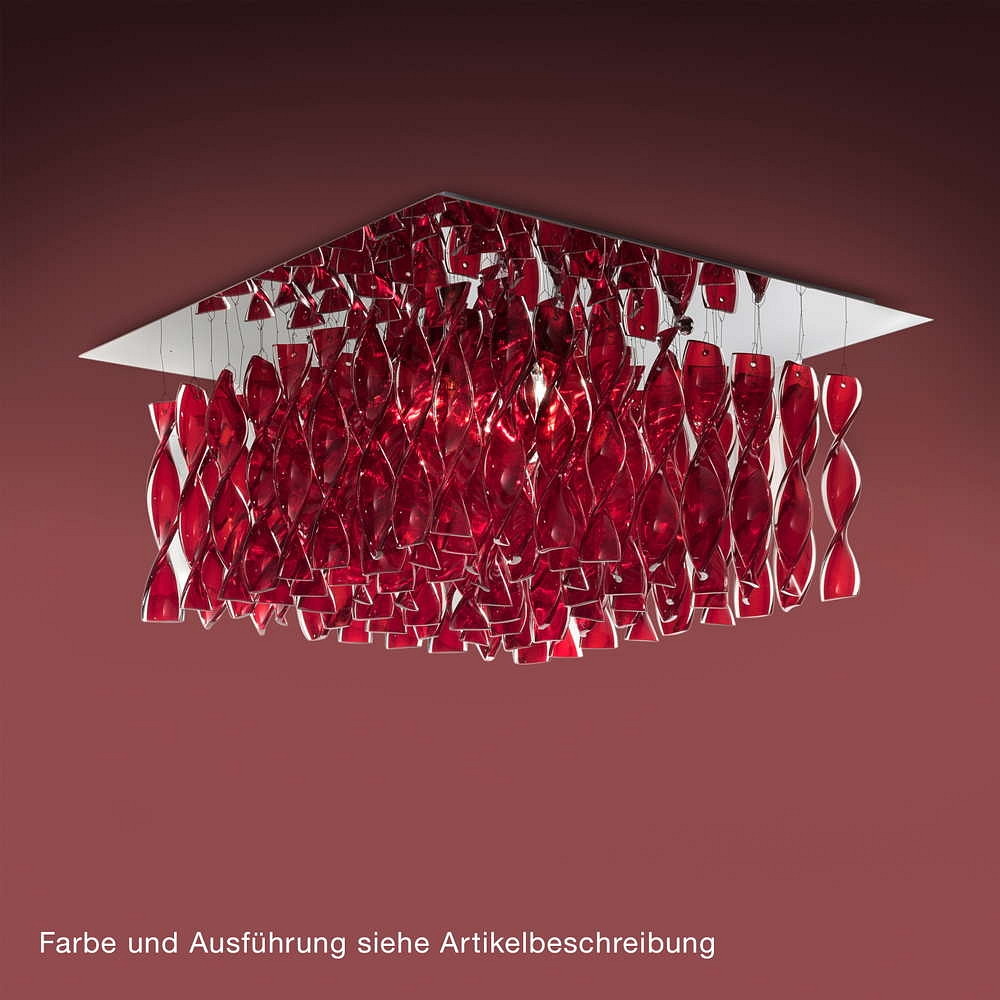 The square design of the ceiling light combined with the shiny chrome and clear Murano glass makes it a true design object. The pendant made of handcrafted double-layered Murano glass gives the light a unique touch and makes it a real eye-catcher in any room.