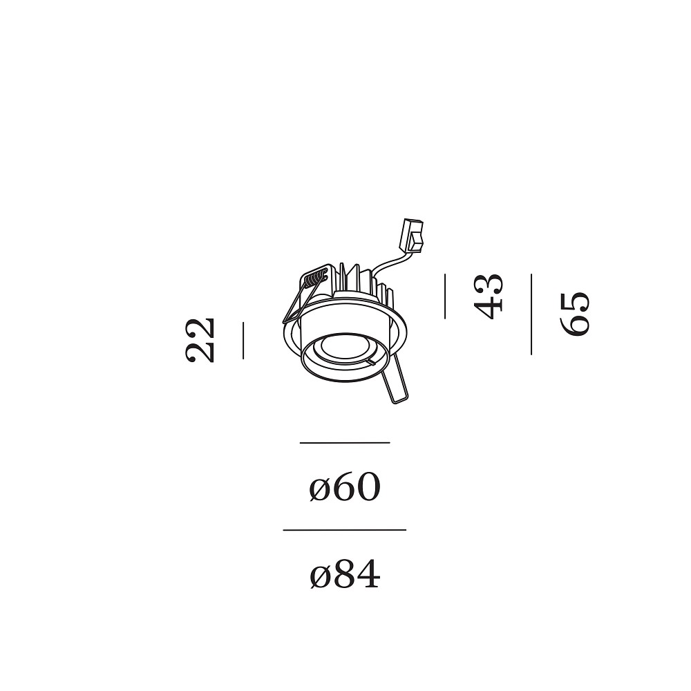 Thanks to the rear wire springs / clip springs, the installation of the spotlight is quick and tool-free, making it particularly suitable for cavity ceilings. The appropriate ceiling cutout is 7.6cm to 7.9cm, and the suitable ceiling thickness ranges from 0.4cm to 2.5cm. With a size of 8.4cm in diameter and 6.7cm in height, the spotlight fits into various spaces.
