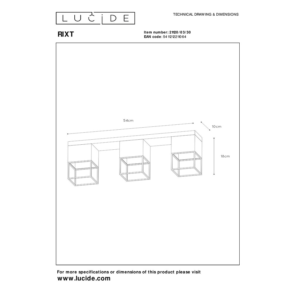 The operating voltage of the ceiling light is 230V. With dimensions of 54x10x18 cm, it fits perfectly on the ceiling and offers direct light distribution. Thanks to protection class 1, the light is safe and durable.