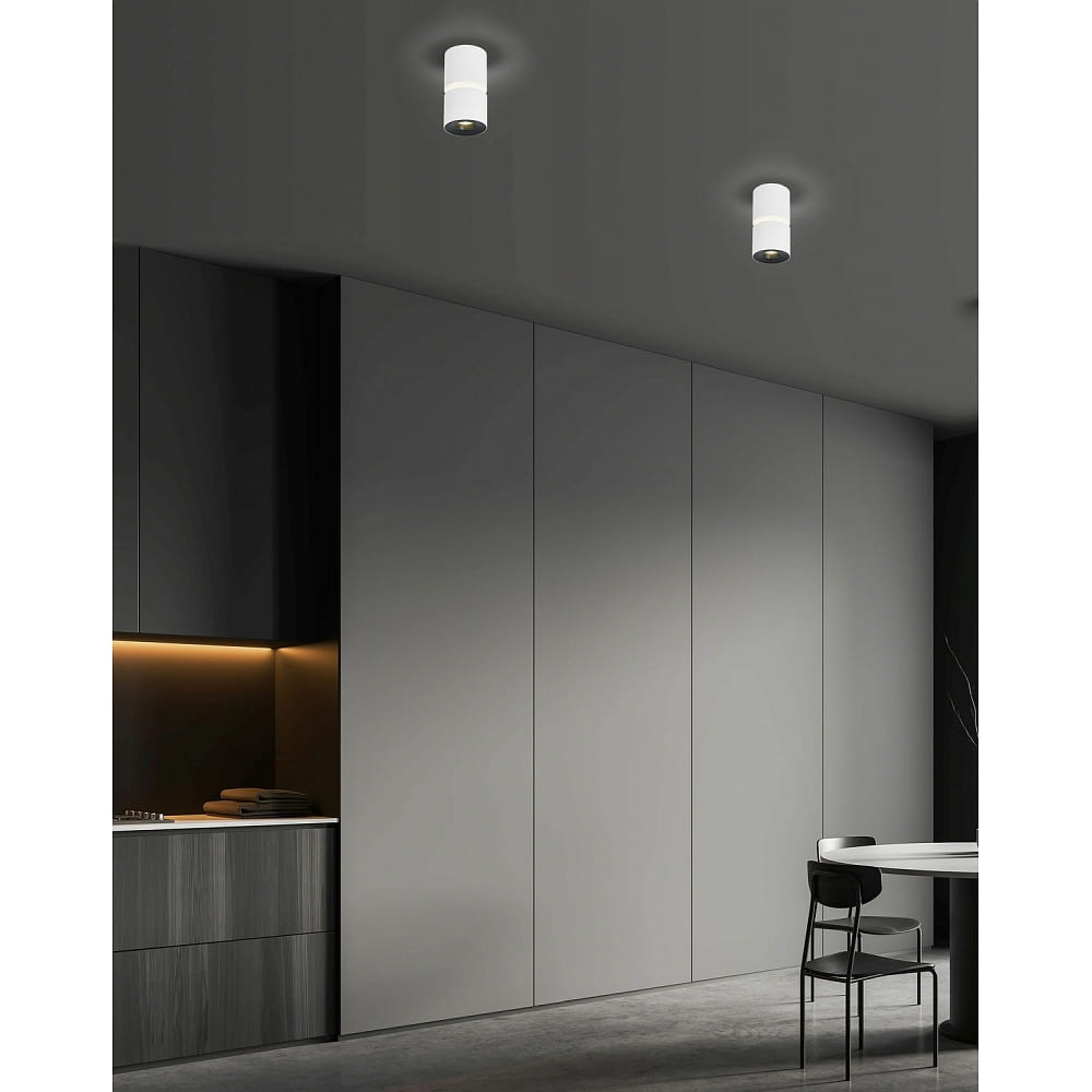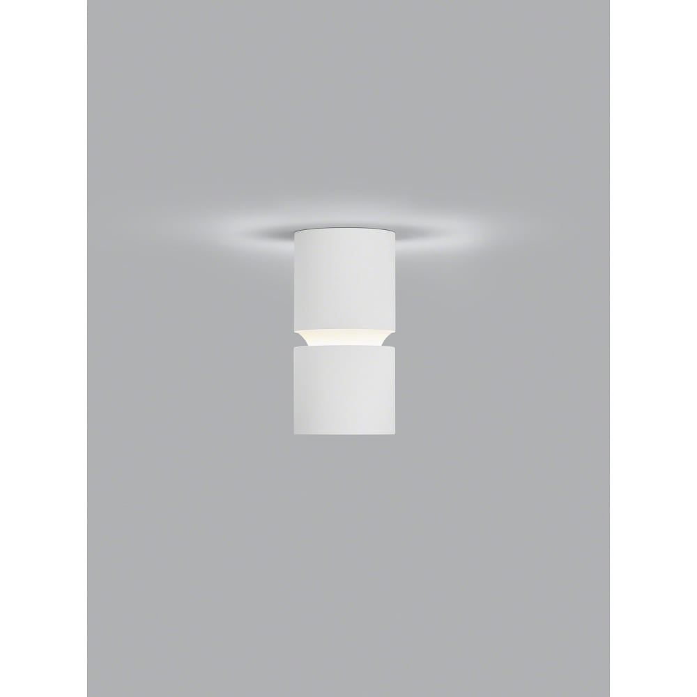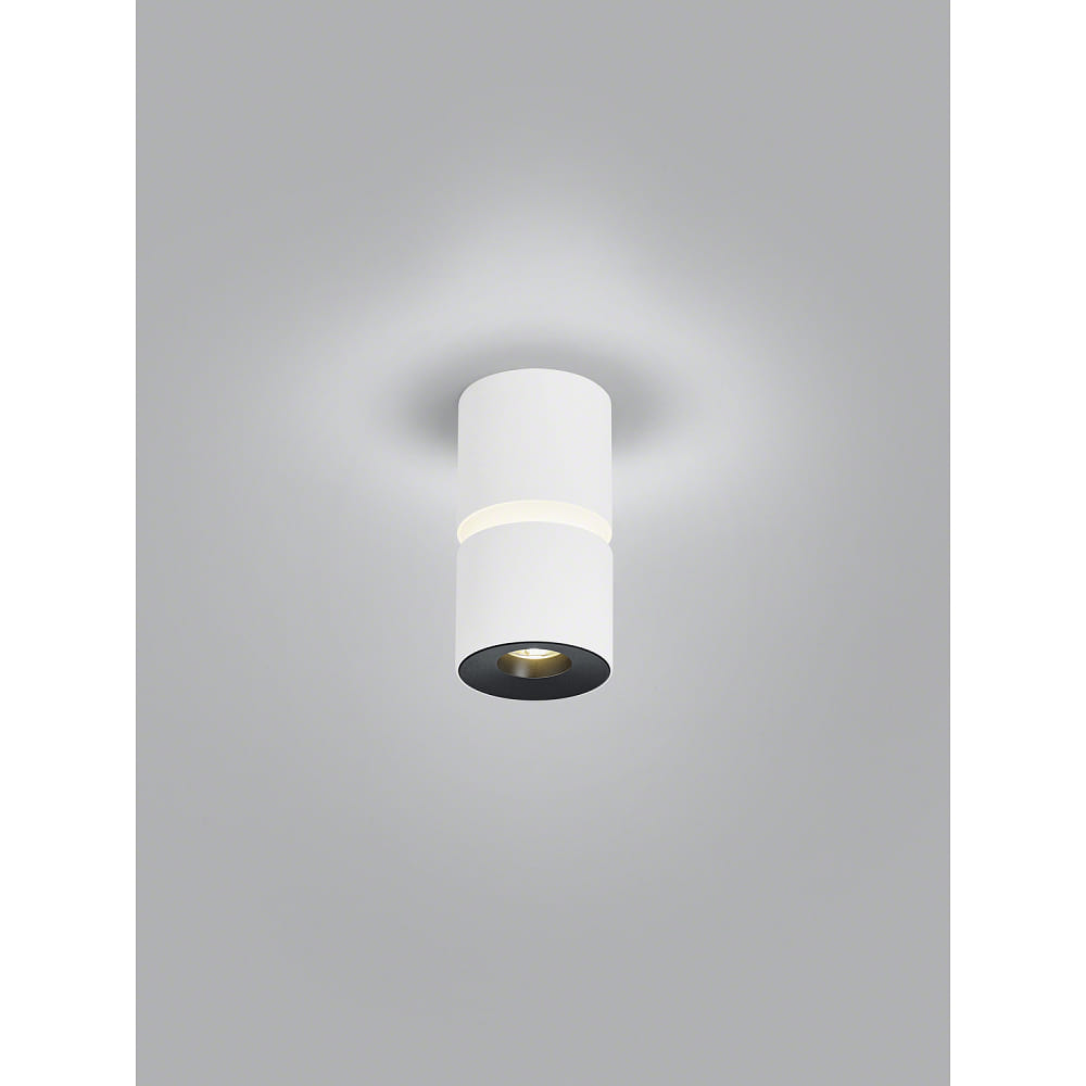 The ceiling light ROK from Helestra is a puristic, cylindrical indoor surface-mounted ceiling light that emits both direct and indirect light. With a power consumption of 10W and a luminous flux of 1020lm, it provides extra warm white light with a color temperature of 2700K and excellent color rendering of CRi >90Ra.