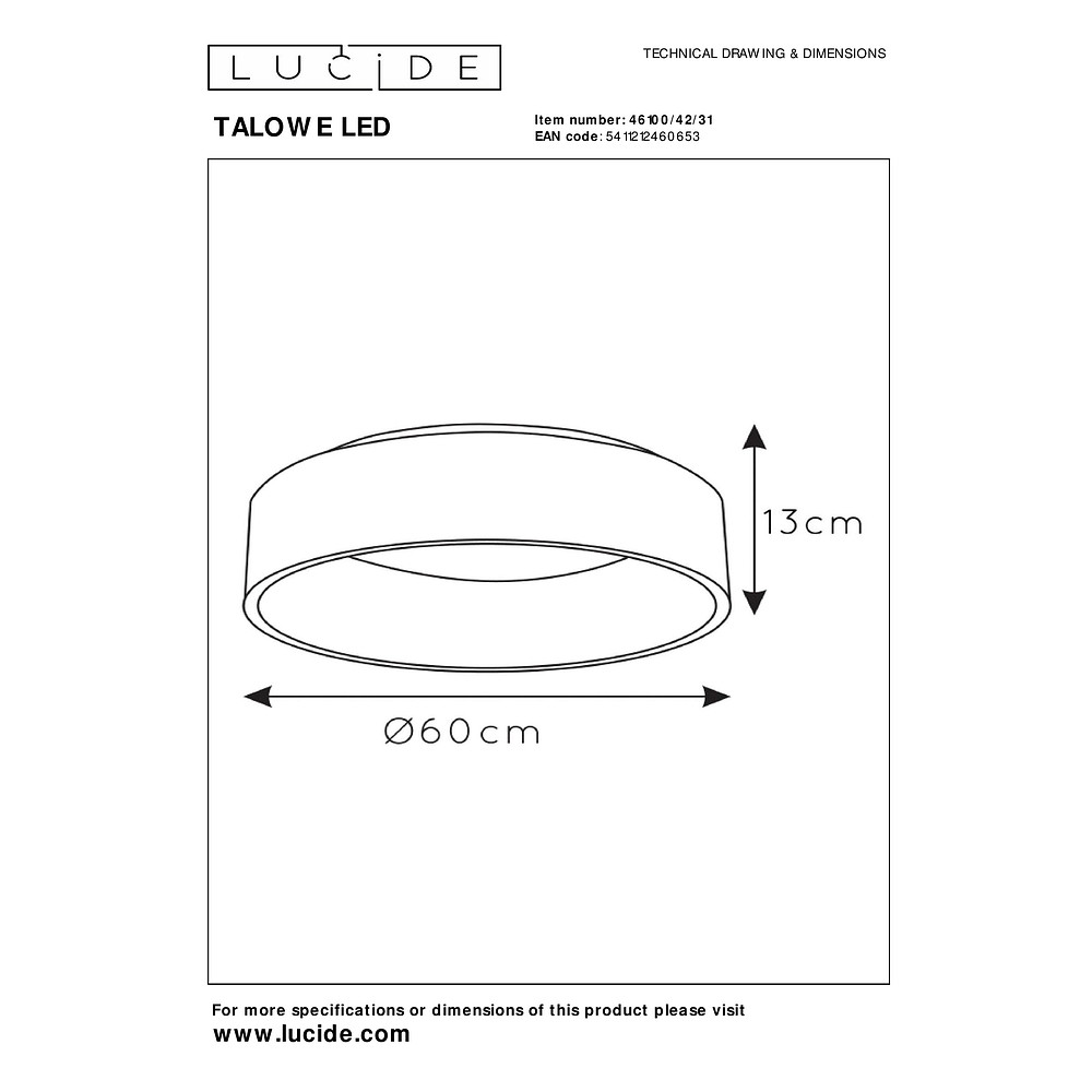 The LED ceiling light TALOWE is a modern and energy-saving lighting element for your home. With a diameter of 60 cm and a power of 42W, it provides sufficient brightness for various rooms. The warm white light color creates a pleasant atmosphere.