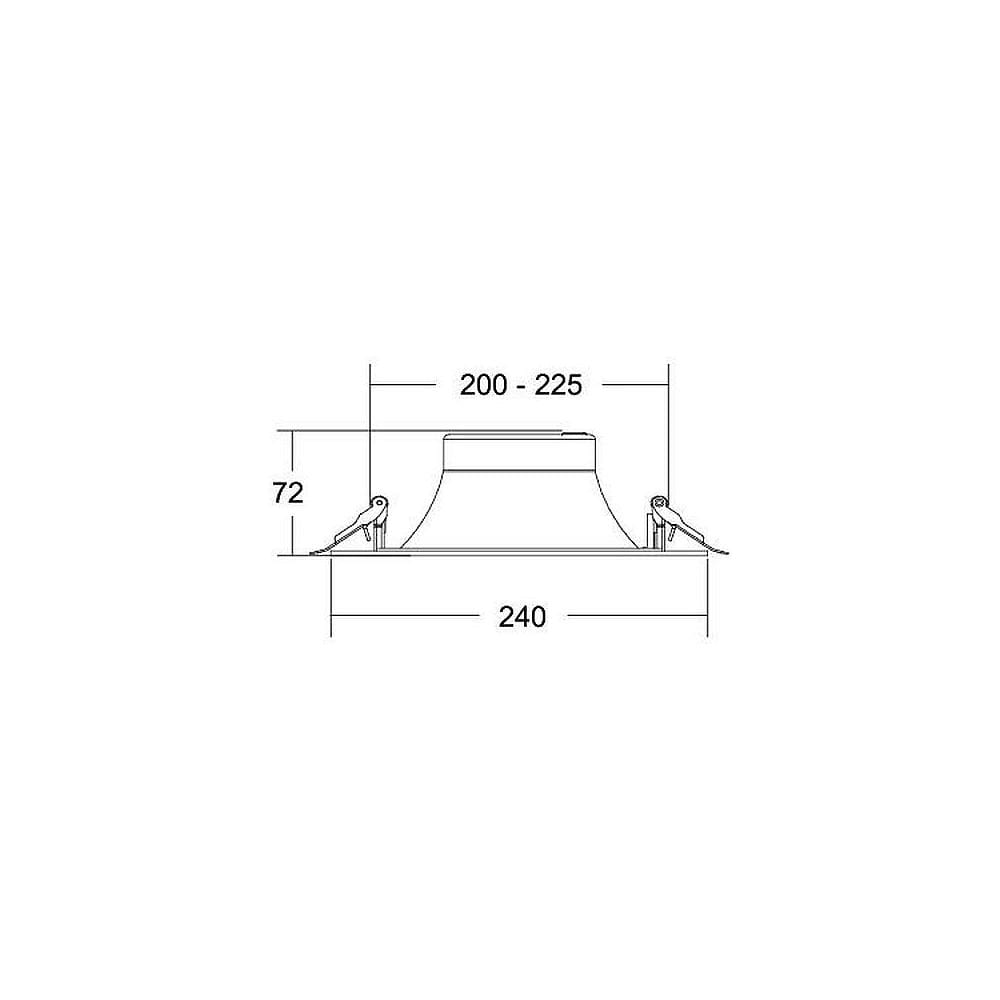 The LED Recessed Downlight DIOS MIDI operates at a supply voltage of 230V AC and a frequency of 50 Hz. Thanks to the DALI dimmability, the light intensity can be adjusted as needed. The downlight has a diameter of 16.5 cm and a installation depth of 9 cm. The installation opening is 15 cm in diameter.