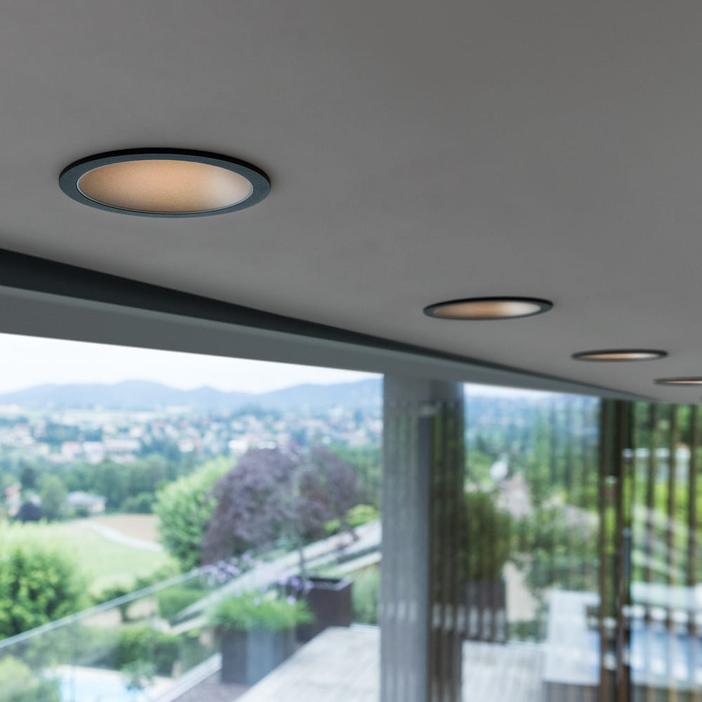The LED Ceiling Recessed Light GAME TRIM ROUND is available in various light colors and housing colors. Additionally, other spotlights from the GAME series are available, with visible or flush trim, square or round. There are also round outdoor versions with protruding trim (TRIM) available.