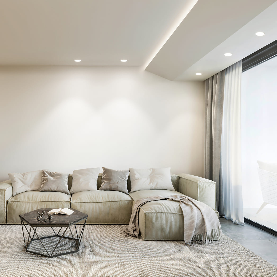 The luminaire is installed by recessing it into hollow and panel ceilings in dry indoor areas. The TRIMLESS version features an invisible built-in plaster-in frame. Included in the delivery are a mounting frame and a driver. A connection cable must be purchased separately. The ceiling recessed luminaire is factory-replaceable and can be equipped with dimmable drivers (1-10V / DALI).