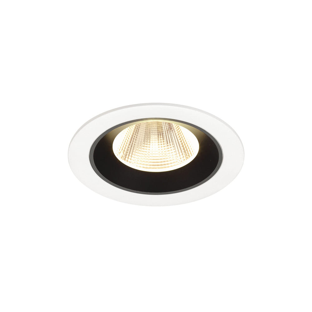 The LED recessed ceiling light NUMINOS® M from SLV impresses with its modern technology and appealing design. With a power consumption of 12 watts, it produces a luminous flux of 1800 lumens in warm white light with a color temperature of 3000K. The luminaire is available in black and white and is made of painted aluminum, which ensures a durable and high-quality appearance. Thanks to its compact size with a diameter of 10.5 cm and an installation depth of only 7.5 cm, it can be easily integrated into various ceilings.