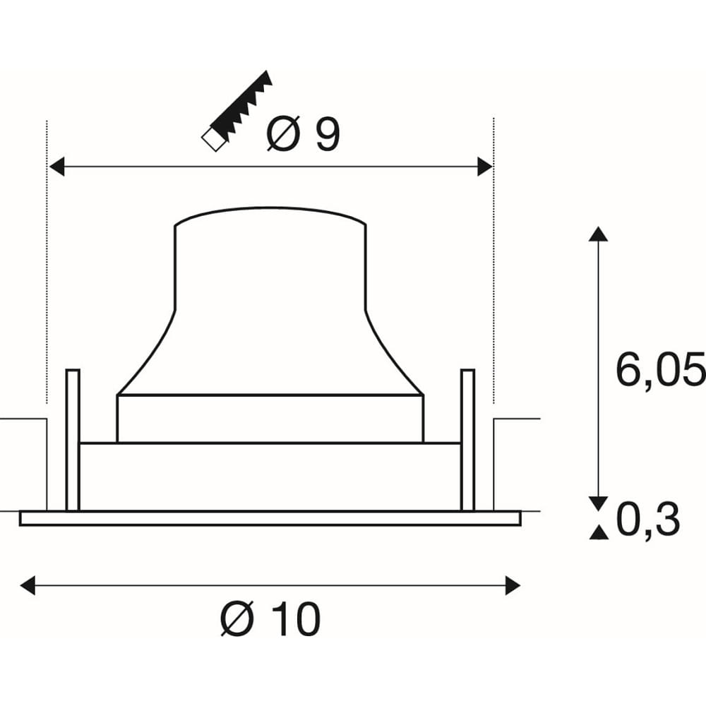The luminaire is made of painted aluminum and is available in black and white. This material ensures a long service life and a stylish look. With a weight of only 188 grams and a recessed depth of 8.5 cm, the luminaire is compact and versatile. The installation opening has a diameter of 9 cm, facilitating easy mounting.