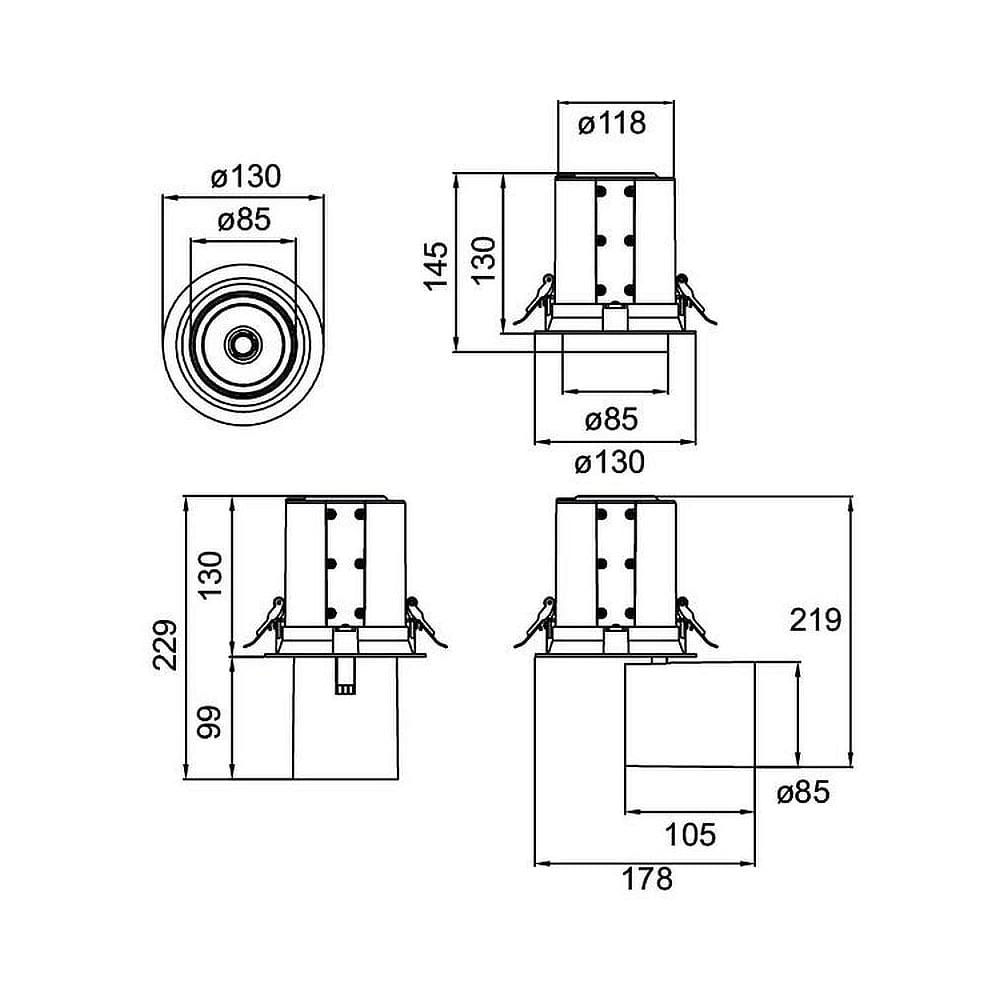 Brumberg ceiling recessed luminaire TRAXX MAXI swivelling, rotatable, direct IP20