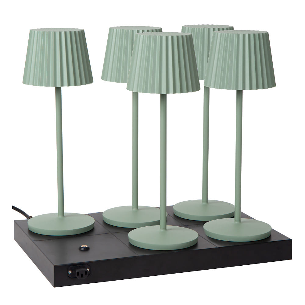 The charging station THE DOCK by Lucide was specially designed for the battery lights of the JUSTINE series. It can hold up to 6 lights and comes in an elegant black color. The charging station is suitable for indoor use and provides a practical and tidy storage solution for the lights.