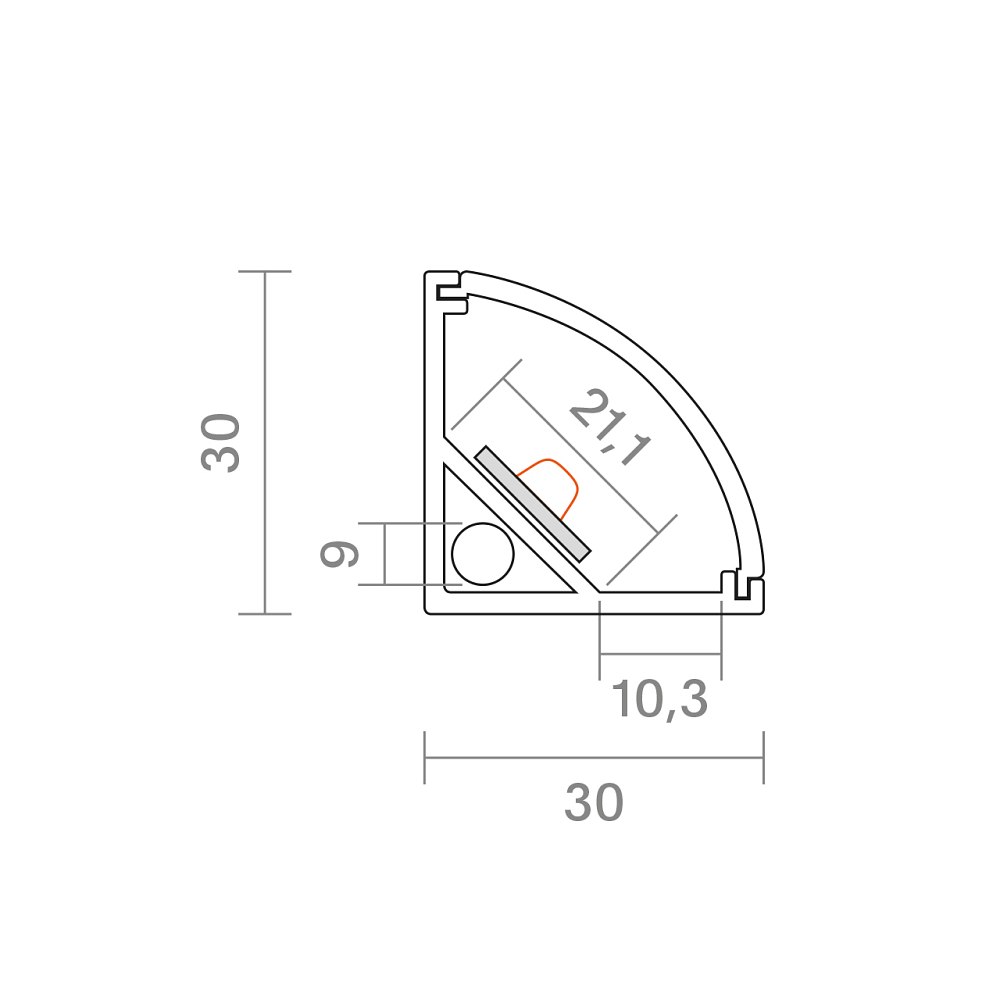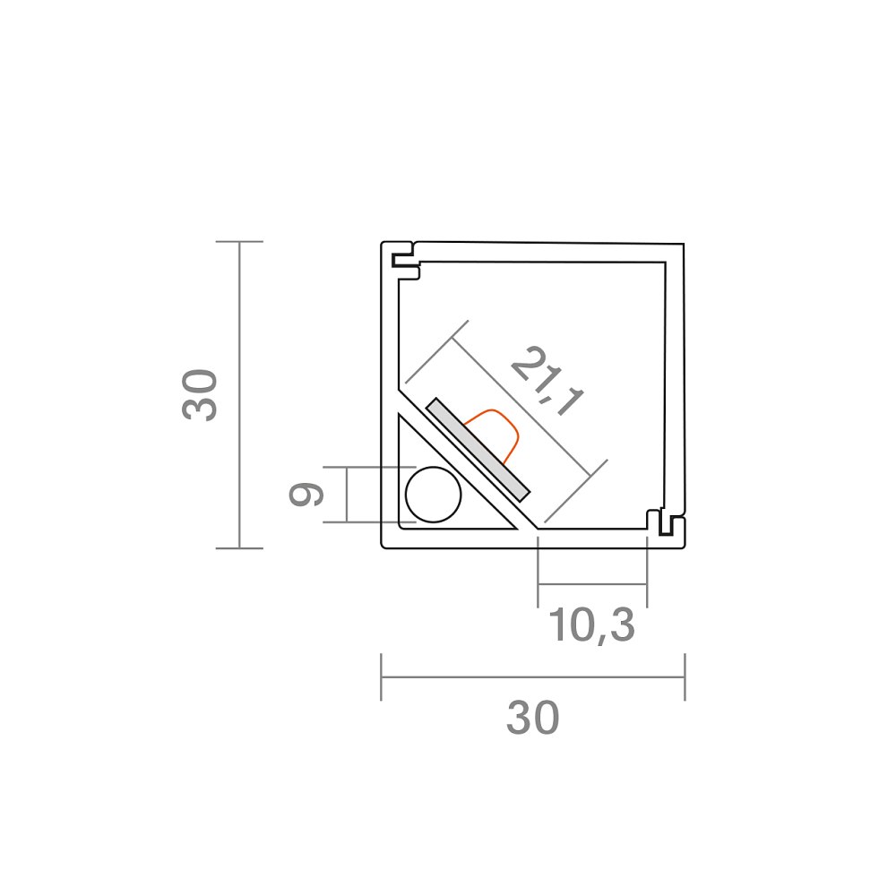 Corner profile 20 - for LED Strips up to 2.11cm width, length 100cm
