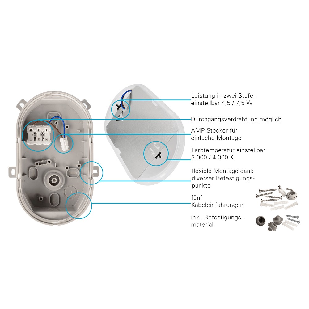 damp-proof luminaire SOTANO IP54 oval, CCT Switch, impact resistant, switchable, multipower IP54, grey