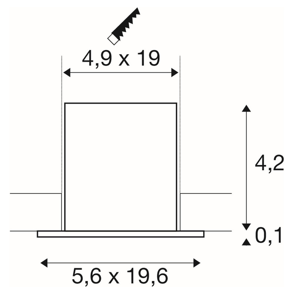 Die Deckeneinbauleuchte MILANDOS 6 mit einem Ausstrahlungswinkel von 45° ist ideal für den Einsatz im Innenbereich geeignet. Mit einer Größe von 19,6 x 5,6 x 4,3 cm und einer Einbautiefe von 7 cm kann sie problemlos in die Decke montiert werden.