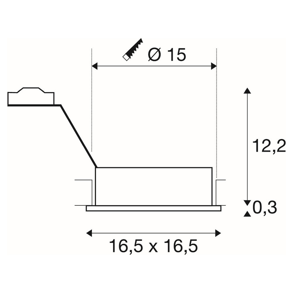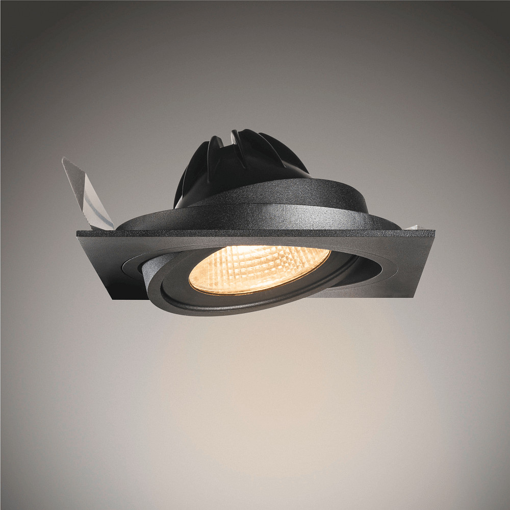Die Leuchte verfügt über einen Schwenkbereich von 30°, um das Licht gezielt auszurichten. Die Einbauöffnung hat eine rechteckige Form mit einer Länge und Breite von jeweils 16,5 cm. Der Deckeneinbaustrahler eignet sich für Decken mit einer Materialstärke von maximal 30 mm.