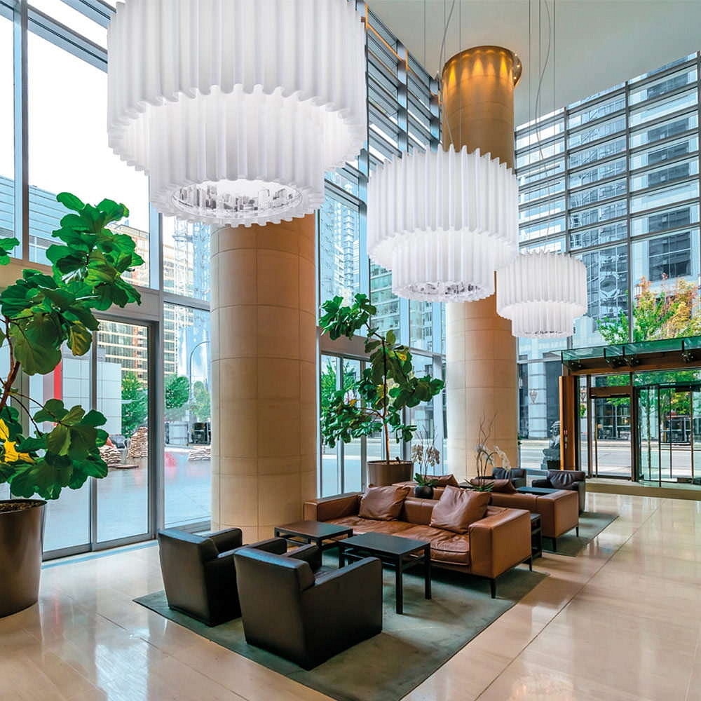 Die Deckenleuchte verfügt über 4 Leuchtmittel vom Typ E27, die mit einer maximalen Leistung von 70W betrieben werden können. Der Schirm hat eine innere Größe von Ø∕ H: 125∕ 100 cm und eine äußere Größe von Ø∕ H: 150∕ 80 cm. Durch die Dimmbarkeit mit entsprechenden Leuchtmitteln lässt sich die Beleuchtung individuell anpassen.
