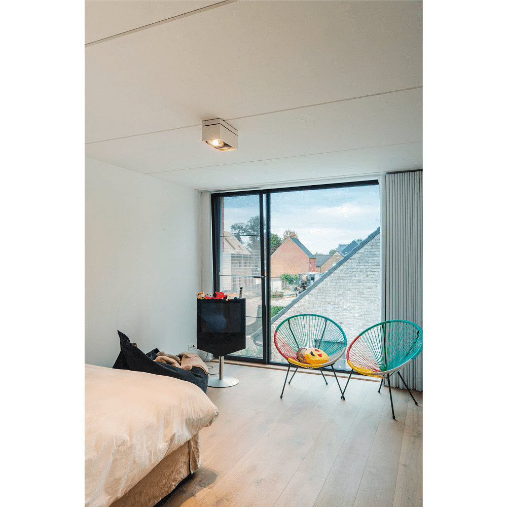 Das weiße Gehäuse des Deckenstrahlers sorgt für eine neutrale und zeitlose Optik, die sich gut in verschiedene Raumgestaltungen einfügt. Die eckige Formgebung verleiht dem Strahler eine moderne und ästhetisch ansprechende Note.