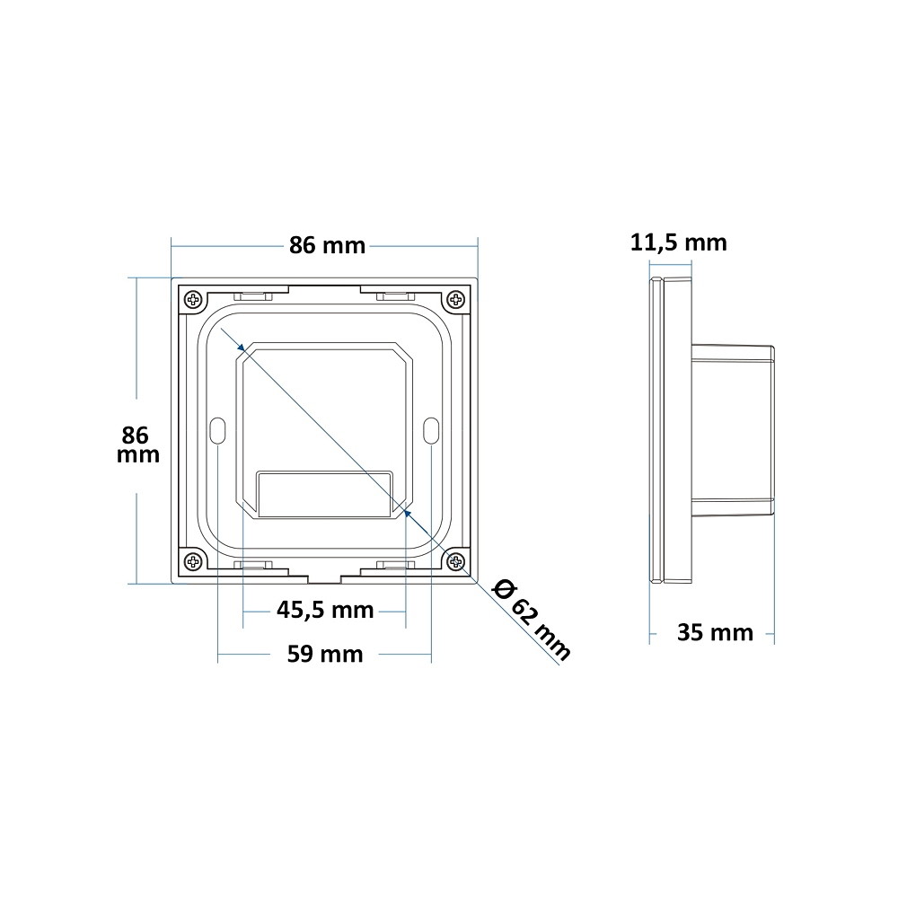The Sys-Pro 1 Zone Touch Radio Dimmer from ISOLED is a versatile product suitable for indoor use. With an operating voltage of 230V~ and a size of 8.6 x 8.6 x 3.5 cm, this dimmer is compact and easy to install. It is in matte black and has an IP protection rating of IP20.