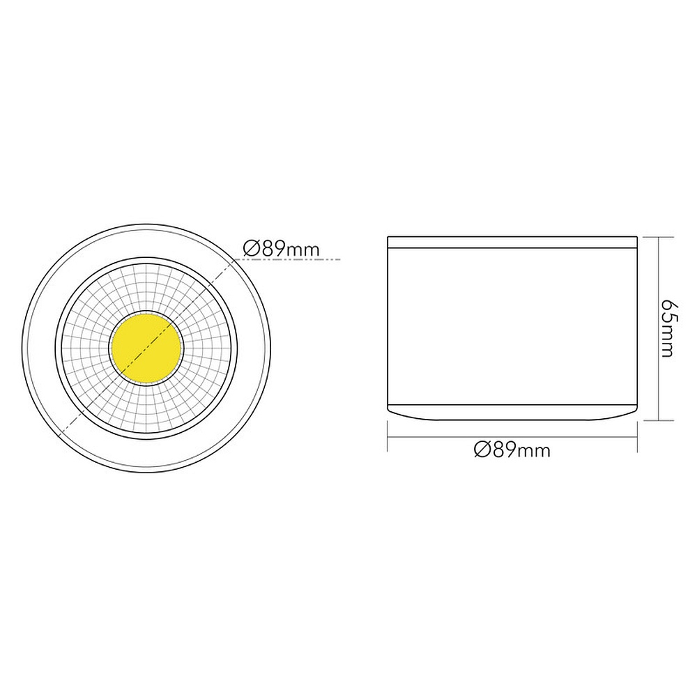 The downlight has an IP protection rating of IP40, protecting it from dust and splashing water. The high-quality aluminum construction guarantees a long lifespan and reliable operation. With a size of Ø 8.9 cm and a height of 6.5 cm, the downlight also fits in smaller spaces and provides even light distribution.
