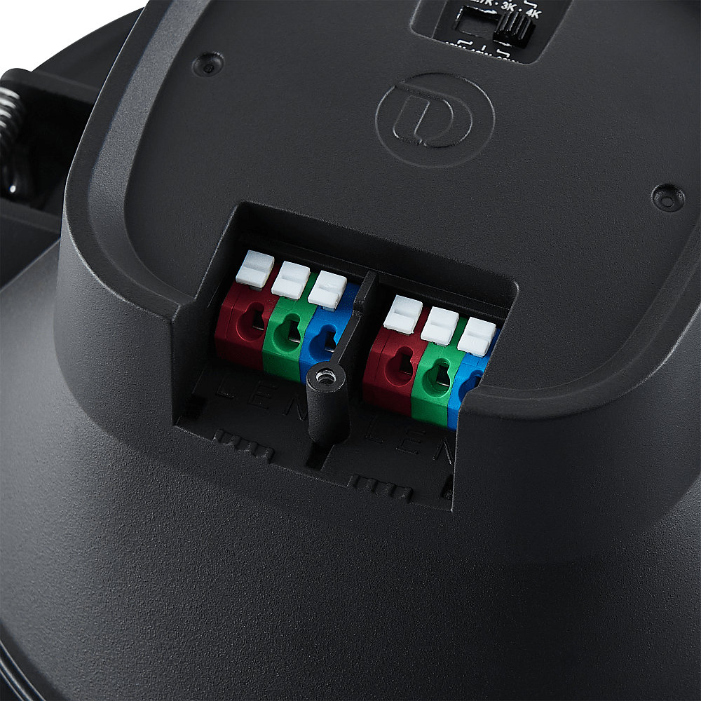 Installation is done via a terminal block power connection, which allows a secure and straightforward connection to the power grid. With a power factor of 0.9, the downlight operates efficiently and saves energy. The low weight of only 0.28 kg further facilitates handling and installation. Overall, the LED downlight ACRUX PRO 145 offers a clever combination of modern design, high functionality, and energy efficiency.
