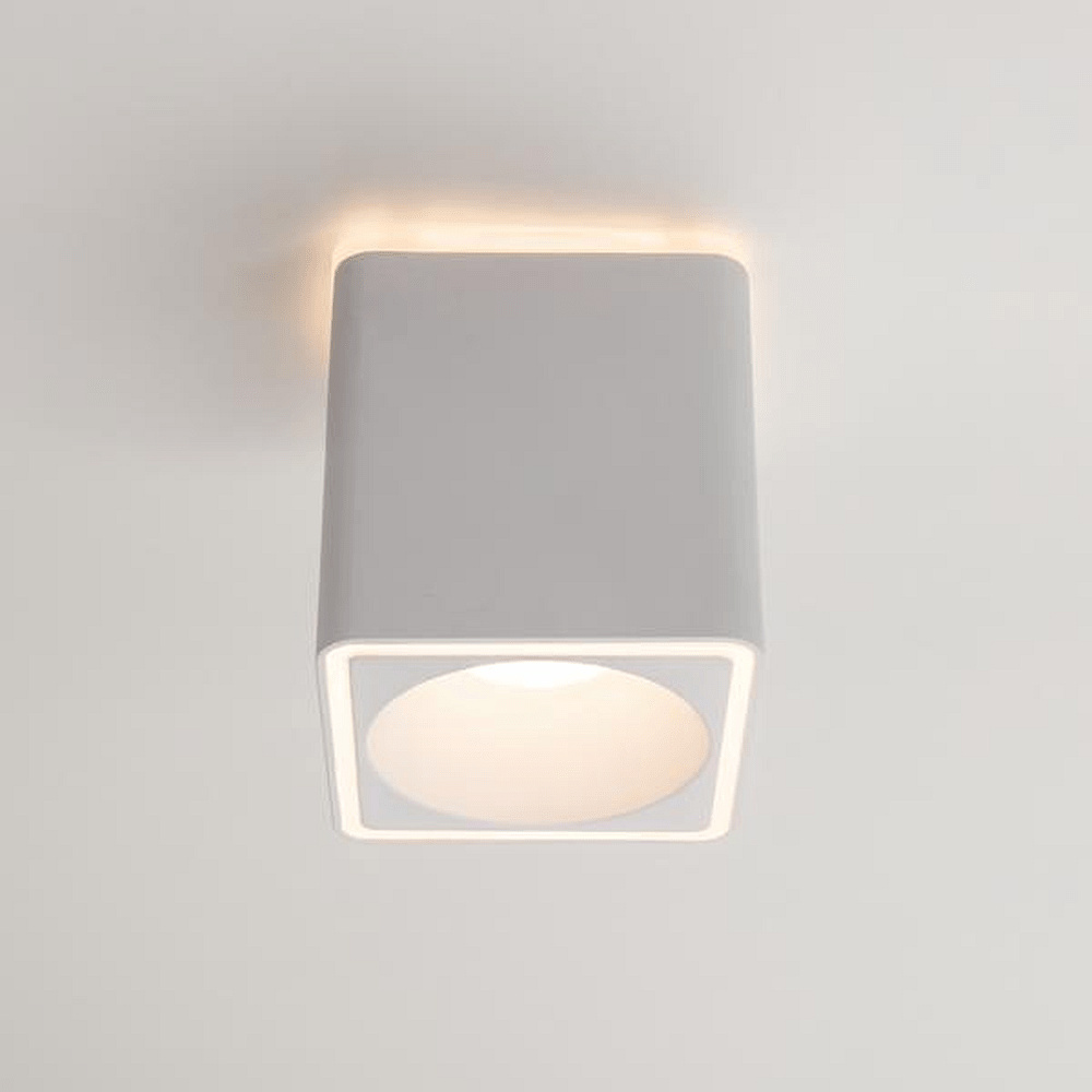 The DOLOK LED surface-mounted downlight from Brumberg impresses with its minimalist yet functional design. It is available in a square shape and blends harmoniously into any environment thanks to its matte black or matte white housing. With dimensions of 9 x 10.6 x 9 cm, the light fixture is compact and ideal as a ceiling light, spotlight, or accent light. The clever design with light gaps at the top and bottom edges creates a special lighting effect and produces a pleasant atmosphere.