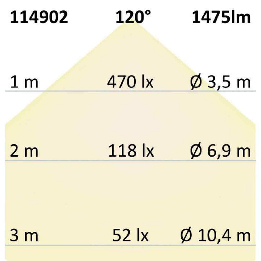 The wide 120° beam angle ensures optimal illumination of the space. The Downlight is not dimmable, but offers an instant start time of only 0.01 seconds and can operate in a temperature range of -20° to 40°C.