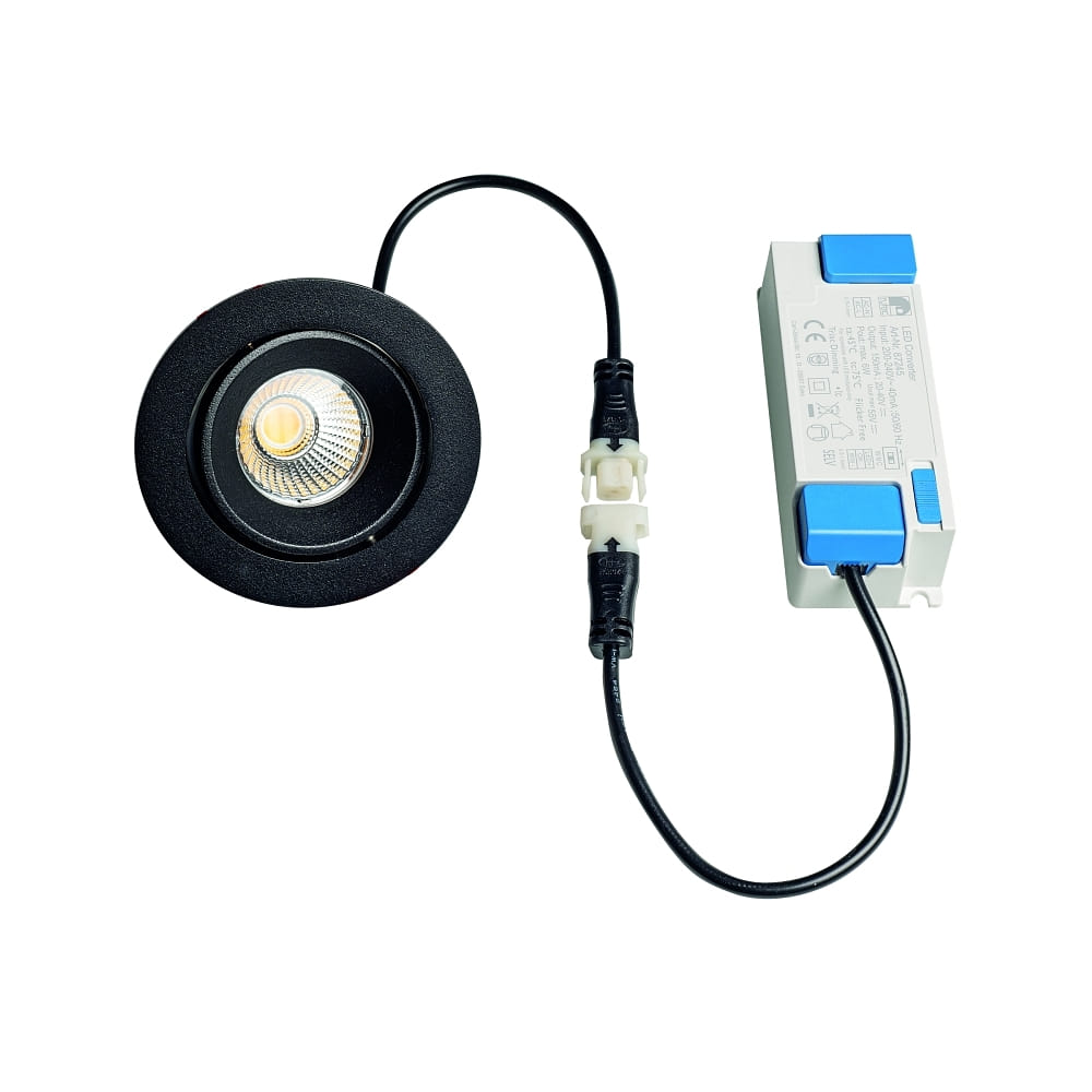 downlight GAIL Plug&Play round, swivelling IP65, powder coated, black matt dimmable