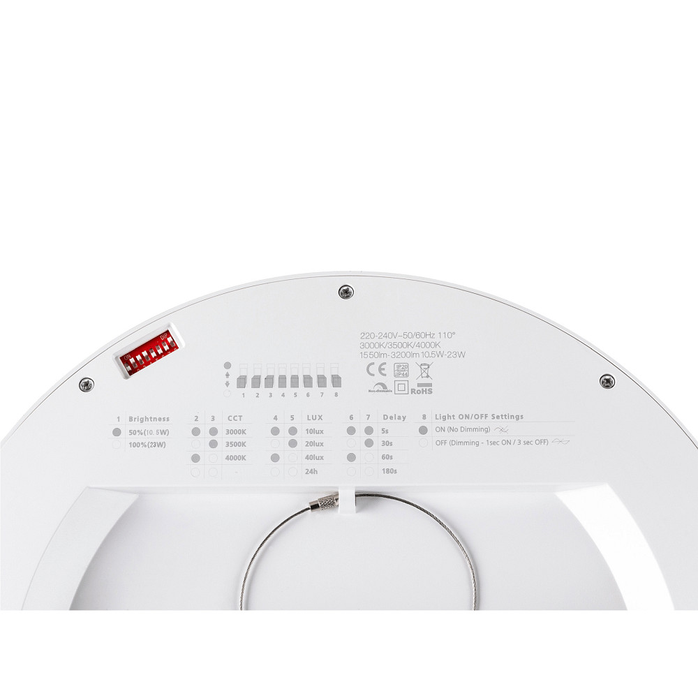 The design of the LED Downlight VARIO 290 is simple and modern, with a white surface that discreetly blends into any environment. With a diameter of 30 cm and a height of only 2.2 cm, it offers a flat, unobtrusive appearance. Thanks to high-quality workmanship and thoughtful technology, the downlight is a durable and reliable lighting solution characterized by ease of use and high efficiency.