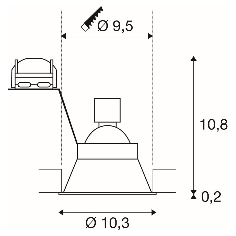 Die Einbauleuchte HORN-O hat eine Größe von Ø 10,6 cm und eine Höhe von 16,5 cm. Sie wiegt lediglich 0,2 kg und hat eine Einbautiefe von 16,5 cm. Die Einbauöffnung beträgt 10 cm im Durchmesser. Mit der IP-Schutzart IP21 ist sie vor Staub und Spritzwasser geschützt, was sie ideal für den Einsatz in Innenräumen macht.