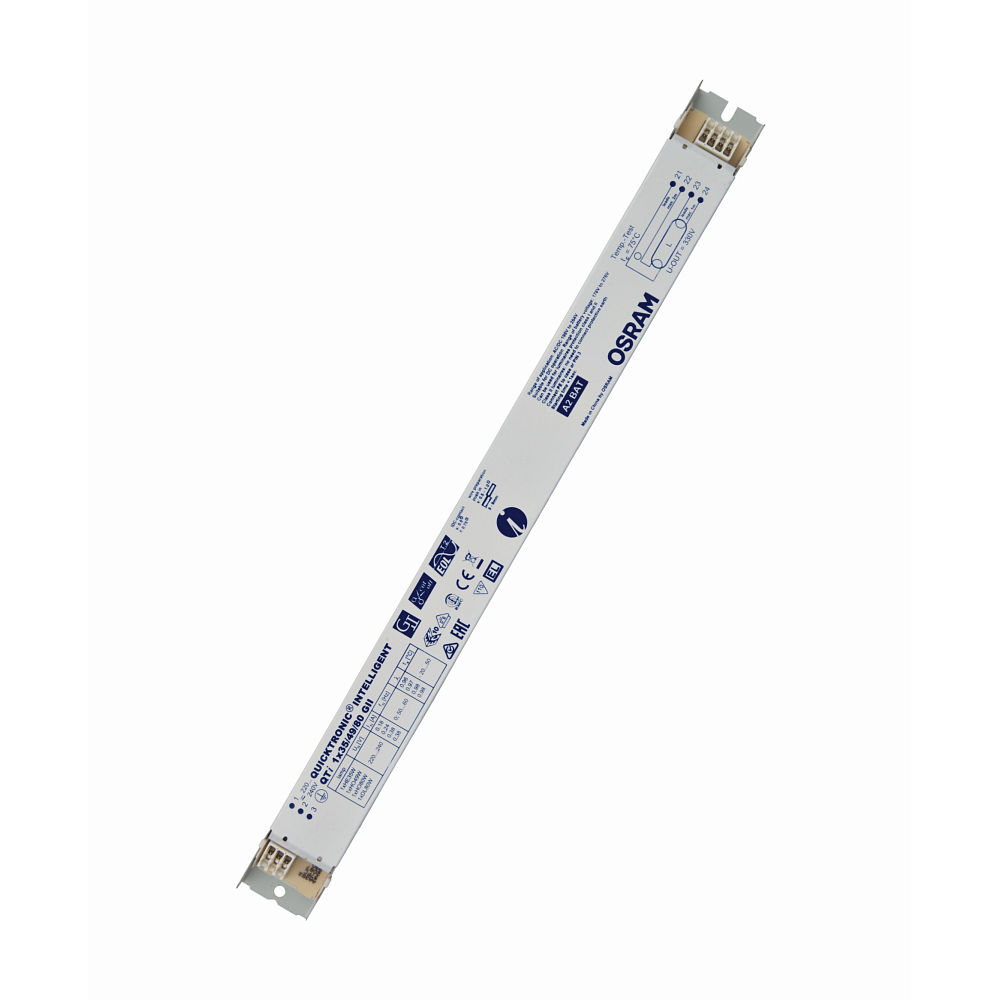 The EVG QUICKTRONIC INTELLIGENT QTi 1x 35/49/80 GII ND provides a perfect start for fluorescent lamps with optimal filament preheating. The ballast achieves highest energy efficiency through cut-off technology. It has an Energy Efficiency Index EEI of A2 BAT and automatically switches off in case of lamp defect or at the end of lamp life.