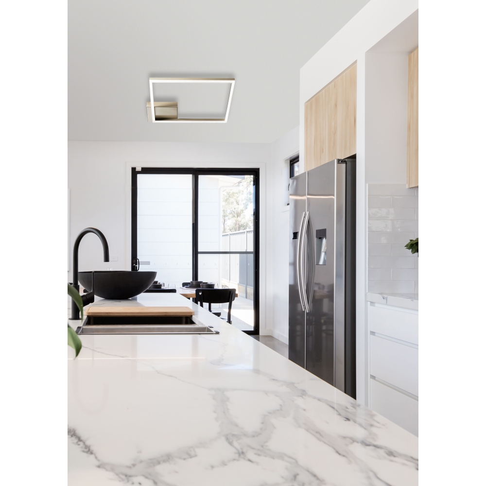 The Fabas Luce BARD LED Ceiling Light is a modern and stylish lighting solution for any room. With a size of 42x42x6.5 cm, it fits perfectly on the ceiling and provides pleasant illumination. The noble matt-satin gold color adds an elegant touch to the room.