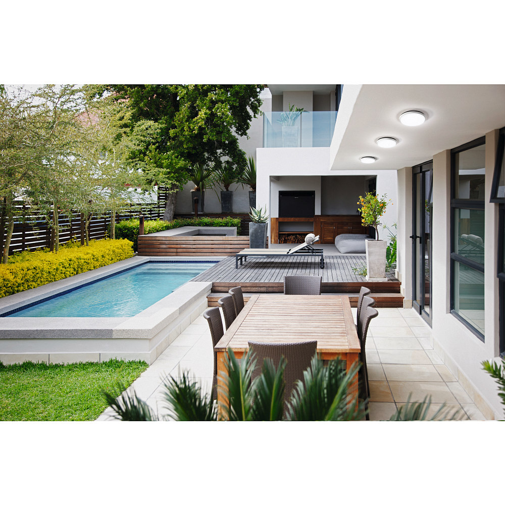 The OLLY ceiling light is made from a high-quality die-cast aluminum frame and a resilient polycarbonate diffuser. This combination guarantees a long service life and robust construction. With an IP54 protection rating, the fixture is protected against dust and splashing water, while the high impact resistance according to the IK10 standard offers additional protection against mechanical impacts. This makes the light particularly durable and resistant to external influences.