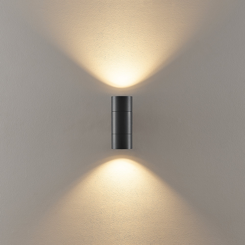 facade spotlight ACHERNAR UP & DOWN 2 flames, cylindrical, with lamp socket GU10 IP65, dark grey