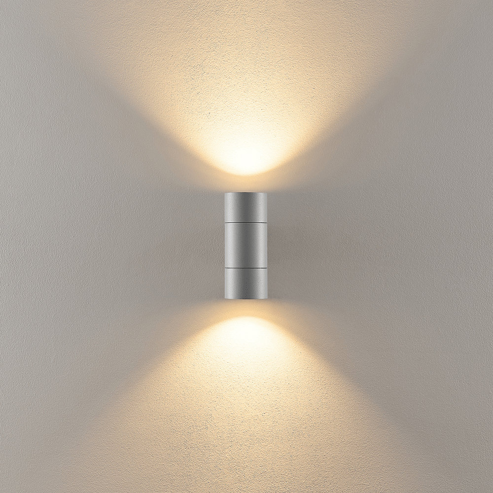 facade spotlight ACHERNAR UP & DOWN 2 flames, cylindrical, with lamp socket GU10 IP65, light grey