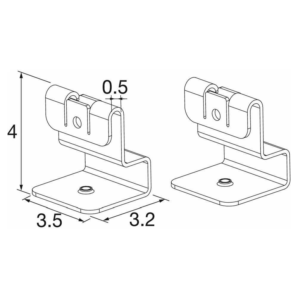 The mounting hooks have compact dimensions of 3.5 cm in length, 3.2 cm in width, and 4 cm in height. This size enables a simple and space-saving installation of the BATTEN FLAT P light strip. Thanks to the precise fit, the hooks can be easily attached to the wire cables without compromising the stability of the structure. This ensures a secure and firm mounting of your luminaire.