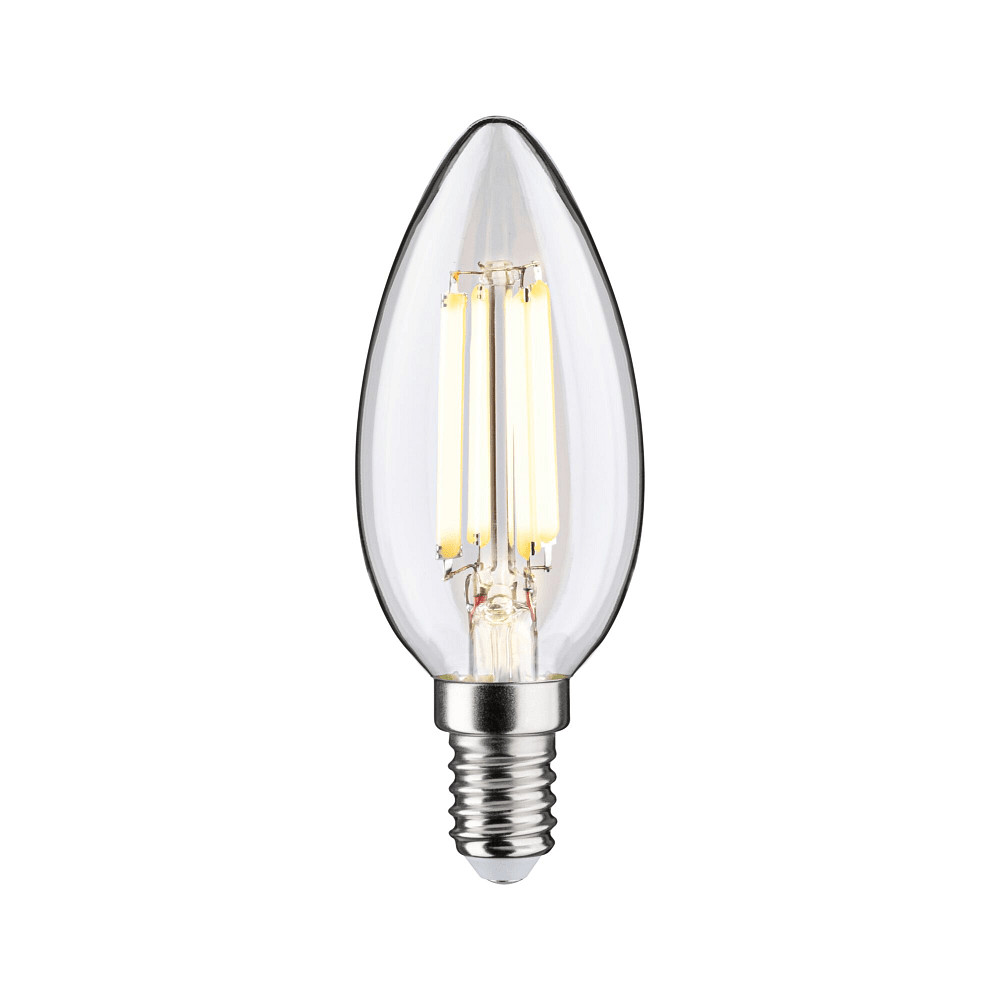 With an impressive average lifespan of 50,000 hours, the Paulmann LED filament candle lamps are particularly durable and reliable. They switch on immediately without delay to full brightness and do not flicker, increasing user comfort. The lamps are suitable for frequent switching on and off without affecting their lifespan. Thanks to high-quality manufacturing from full glass and the new design without plastic bases, they also offer an elegant appearance and high stability.