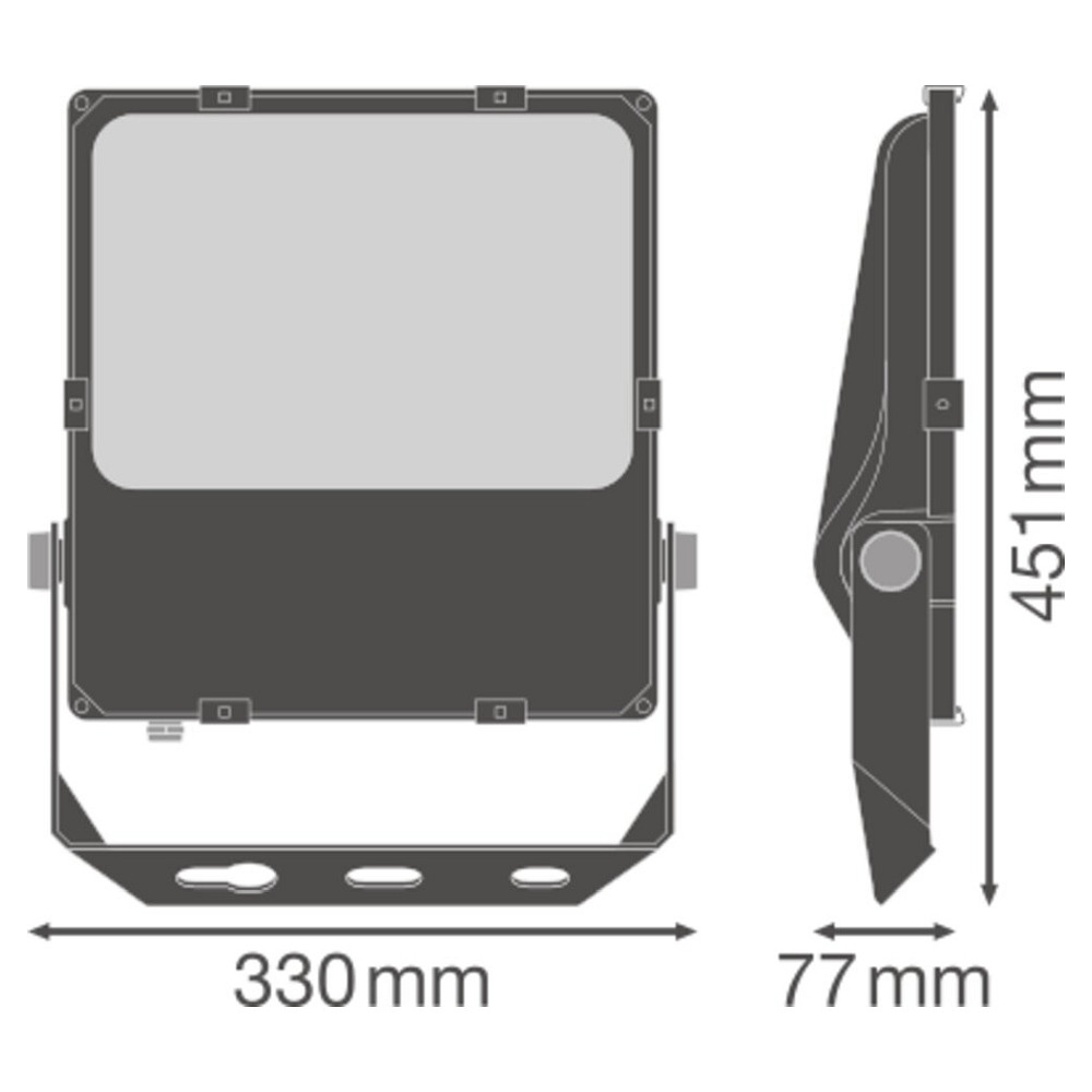 The FLOODLIGHT PERFORMANCE DALI ASYM 45x140 comes with a driver and can be easily installed. The operating voltage of 220-240V~ and a start-up time of less than 0.5 seconds enable quick and reliable lighting. Additionally, this floodlight can be controlled via DALI.