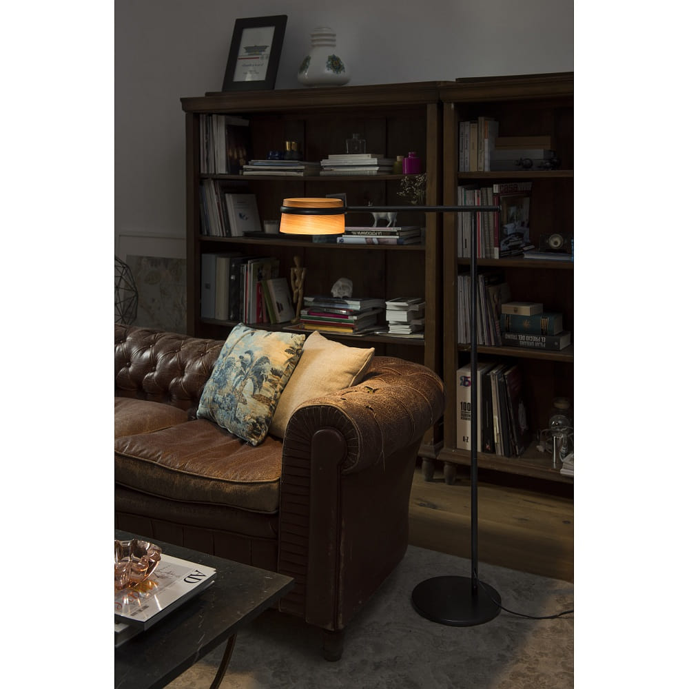 The LED floor lamp LOOP 6W is made of high-quality steel and polymethyl methacrylate (PMMA). The black matte design combined with wood details gives the lamp a modern and timeless appearance. With a size of 65 x 26 x 125 cm, it harmoniously fits into any room.