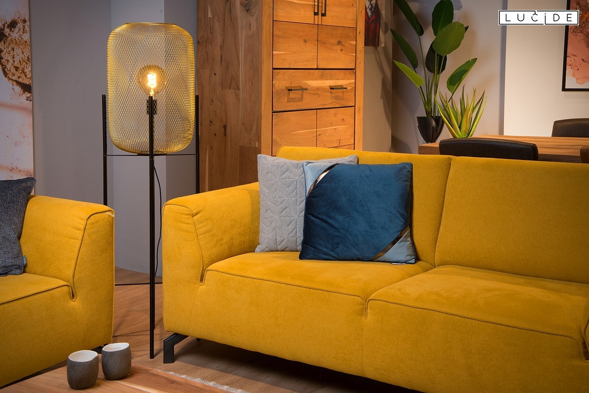 floor lamp MESH cylindrical E27 IP20, gold matt, brass, black