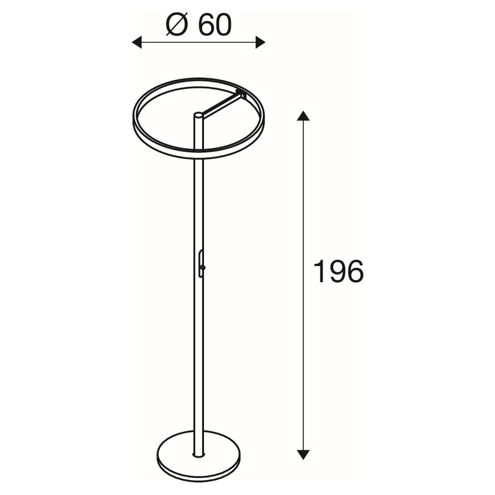 The floor lamp has a size of Ø/H: 60/196 cm and weighs 10.5 kg. It is tiltable and has a tilt range of 77°, allowing for flexible light alignment. The color rendering index is 90Ra, ensuring natural and accurate lighting.